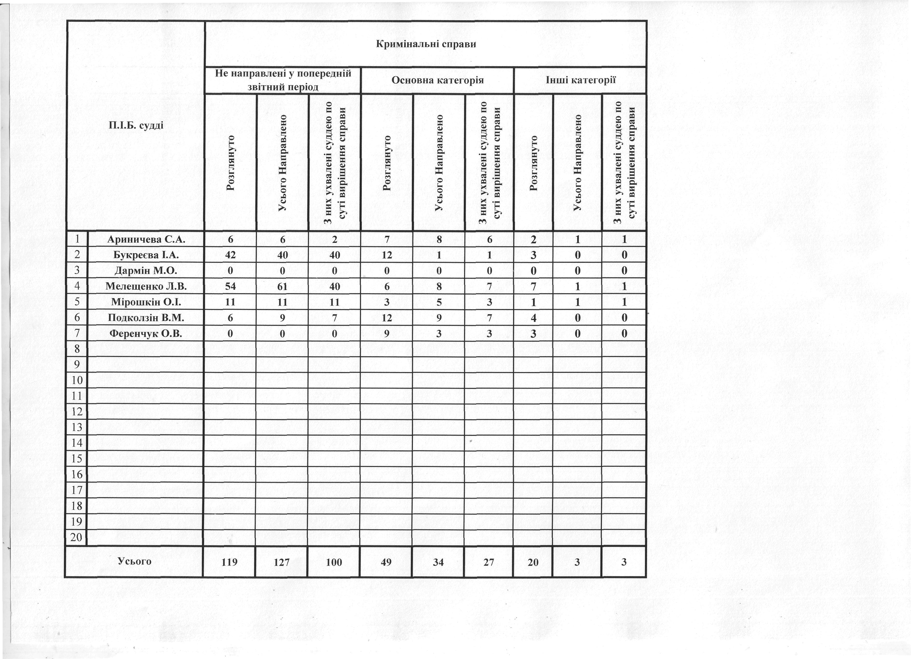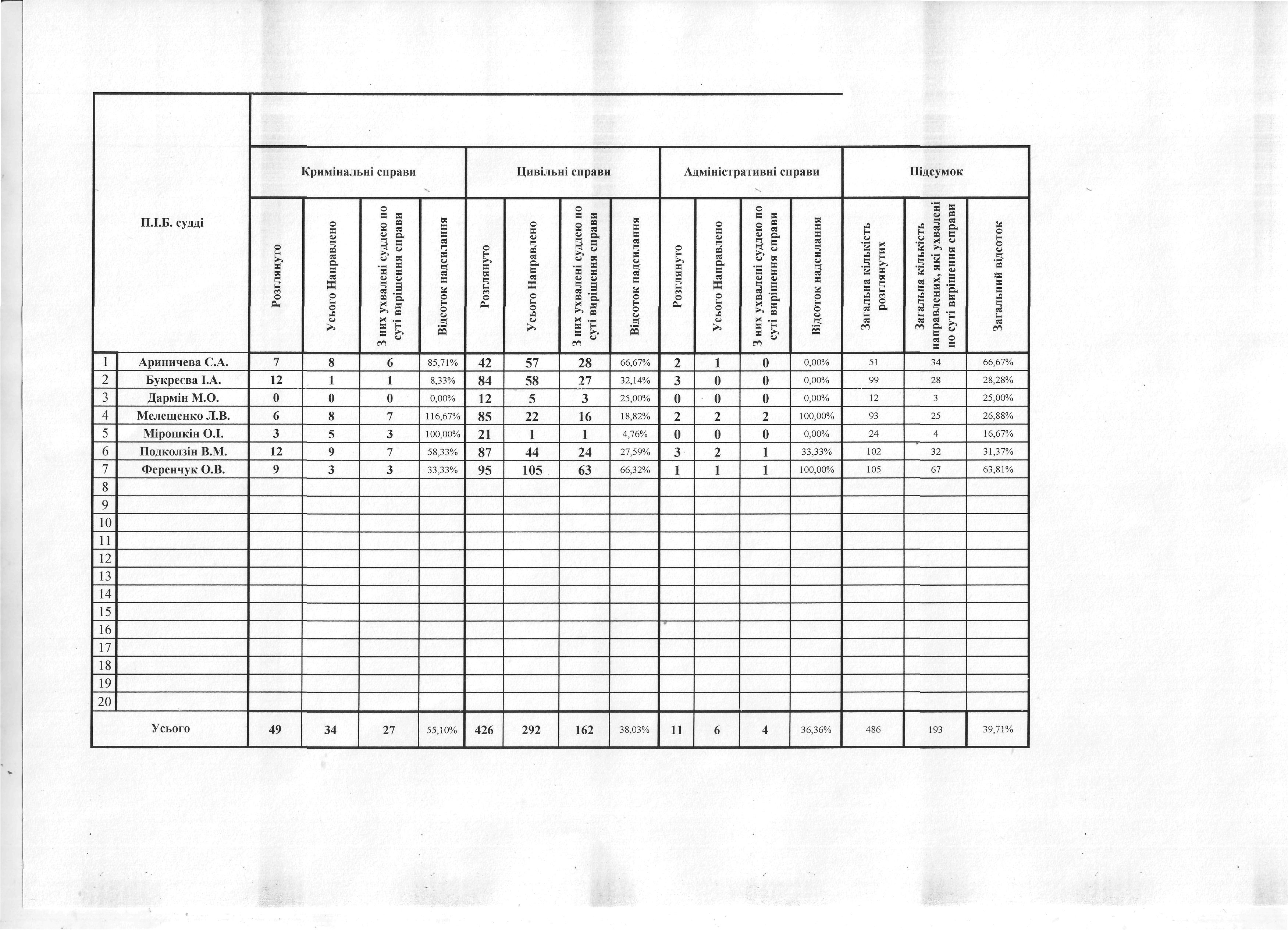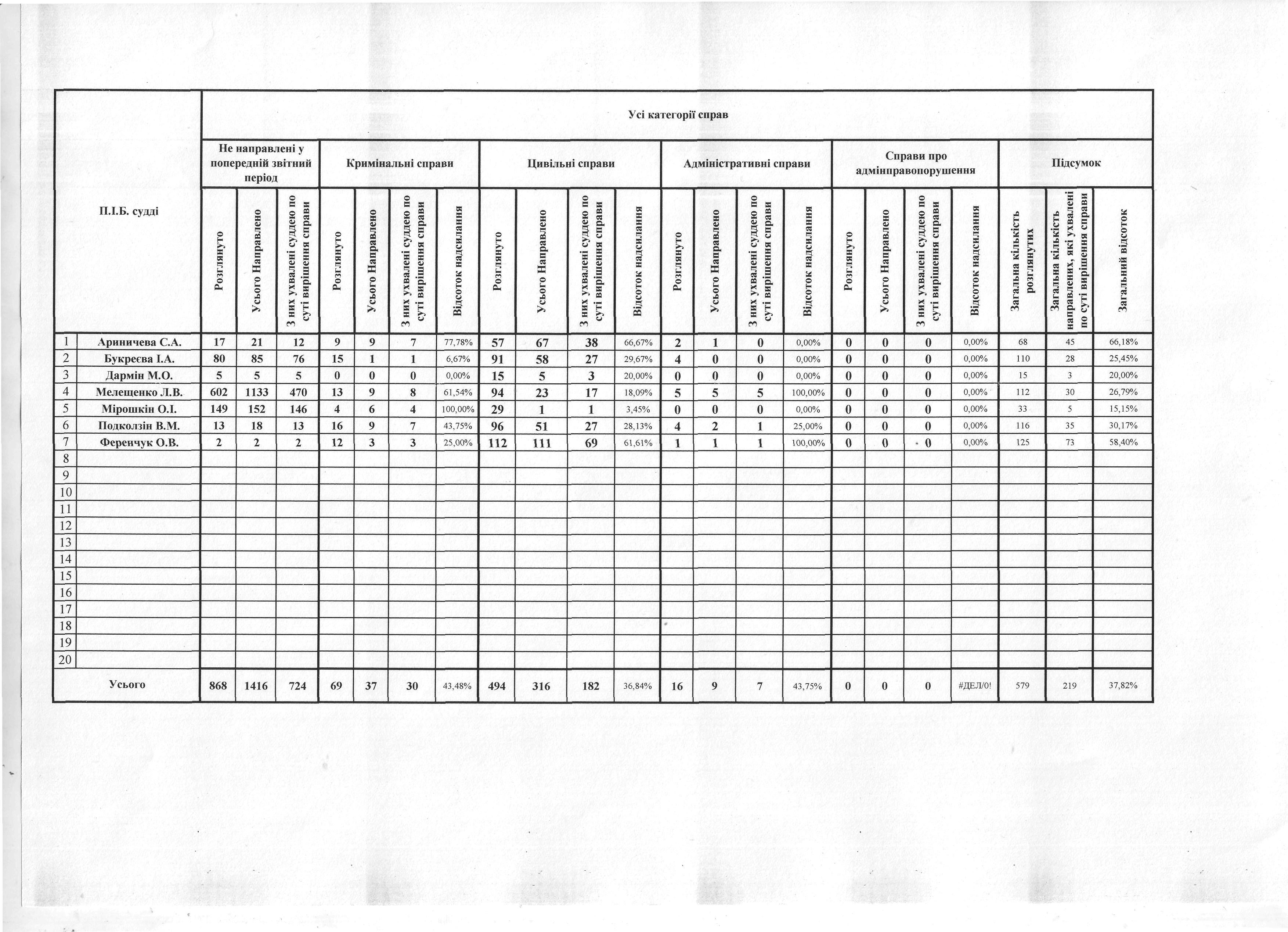 Показники діяльності суду за півріччя та рік