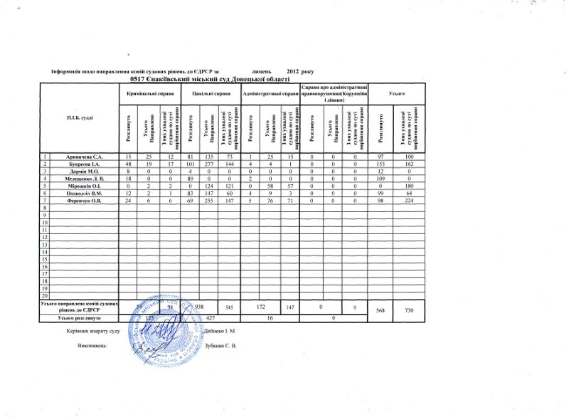Перелік затверджених наказом голови суду документів, що містять службову інформацію