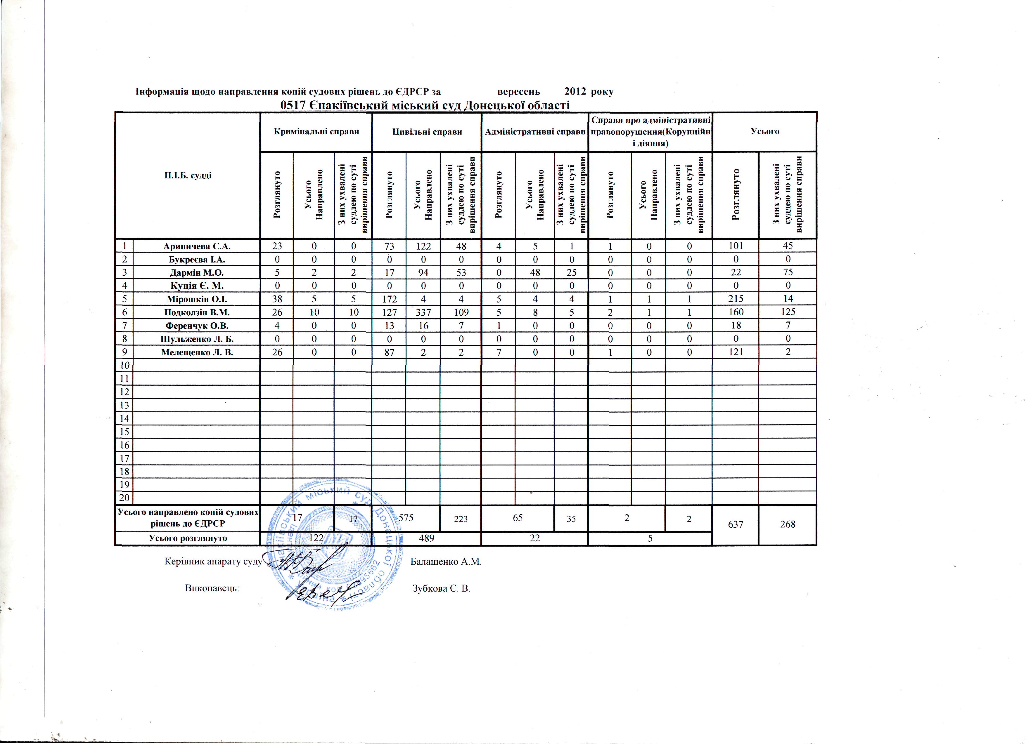 Звіт ЄДРСР за вересень 2012 року