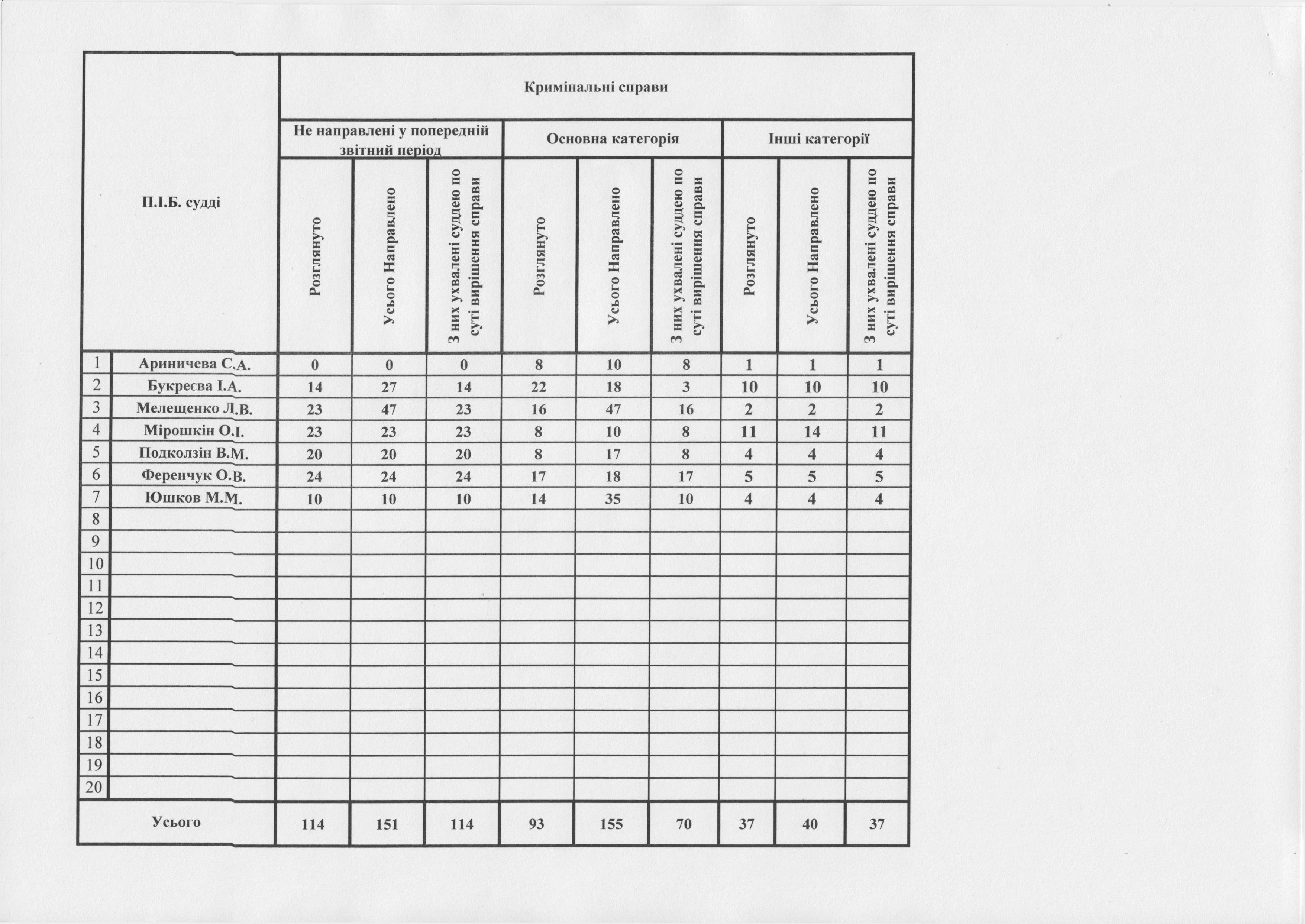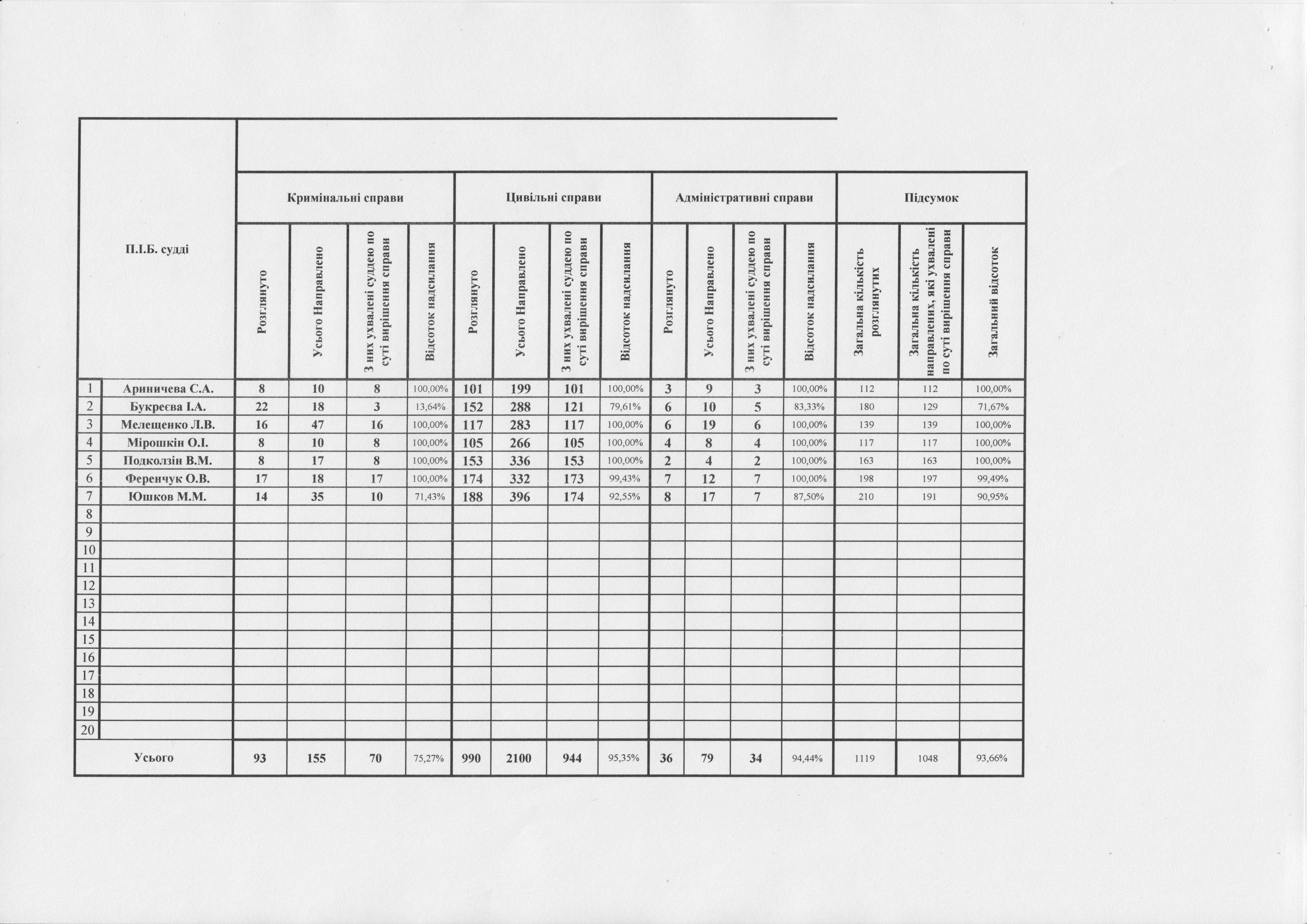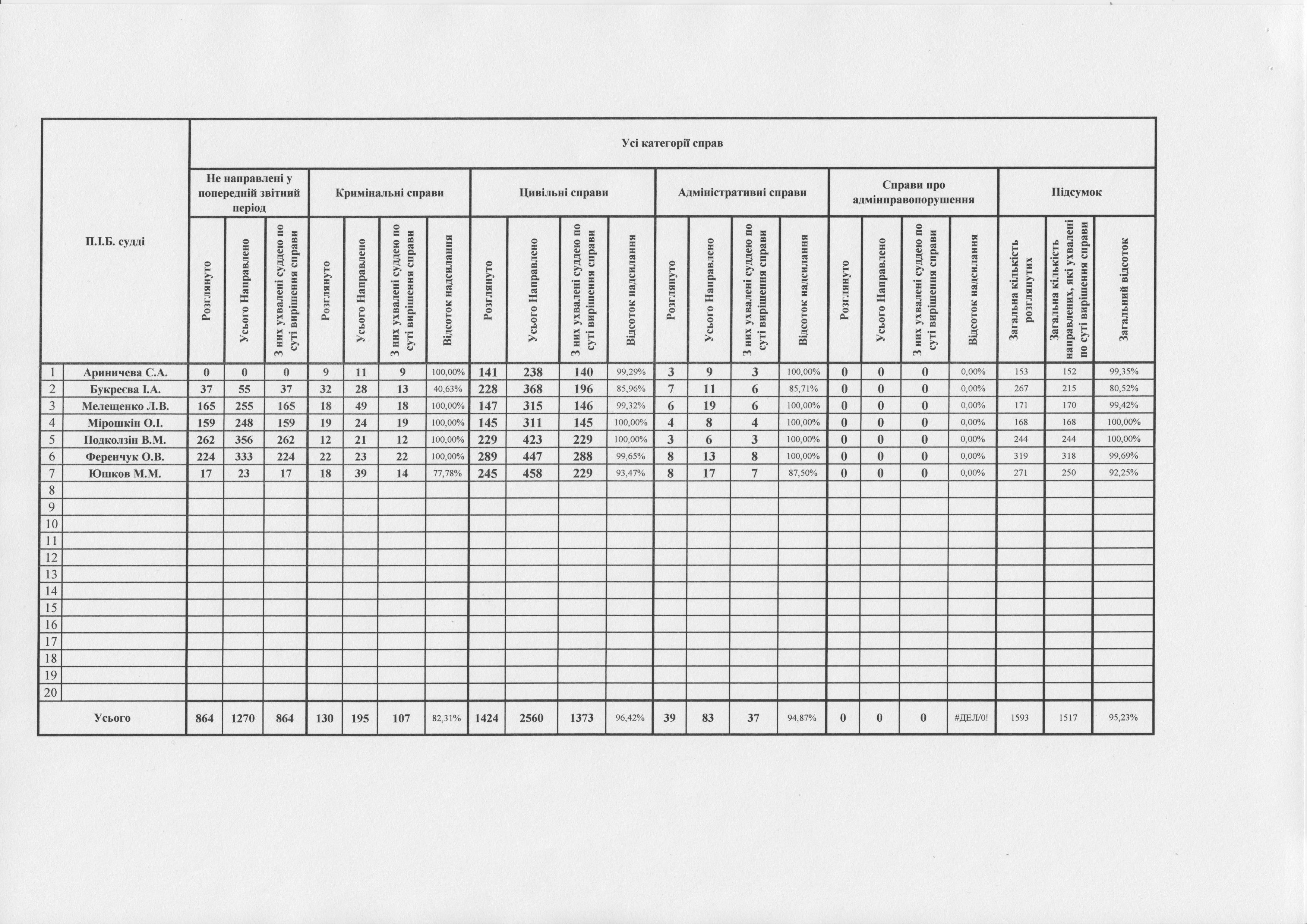 Показники діяльності суду за півріччя та рік
