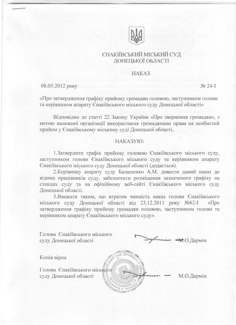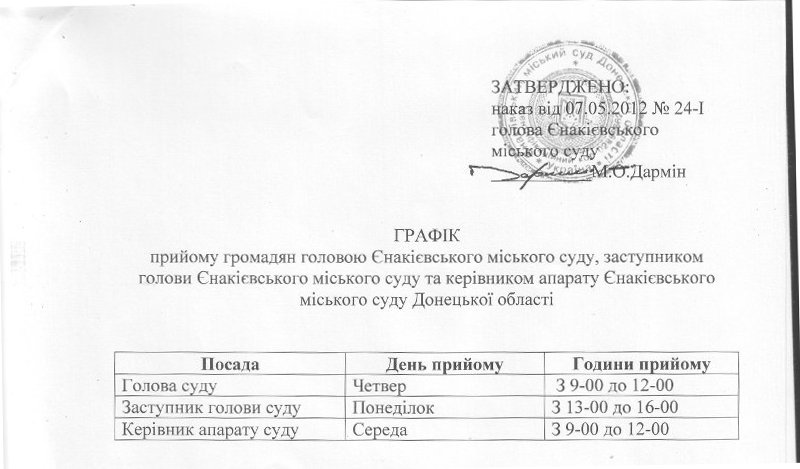 Про затвердження графіку прийому громадян головою суду, заступником голови суду та керіником апарату